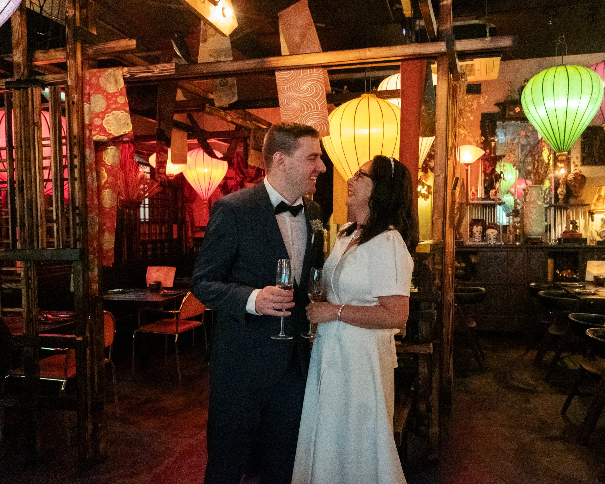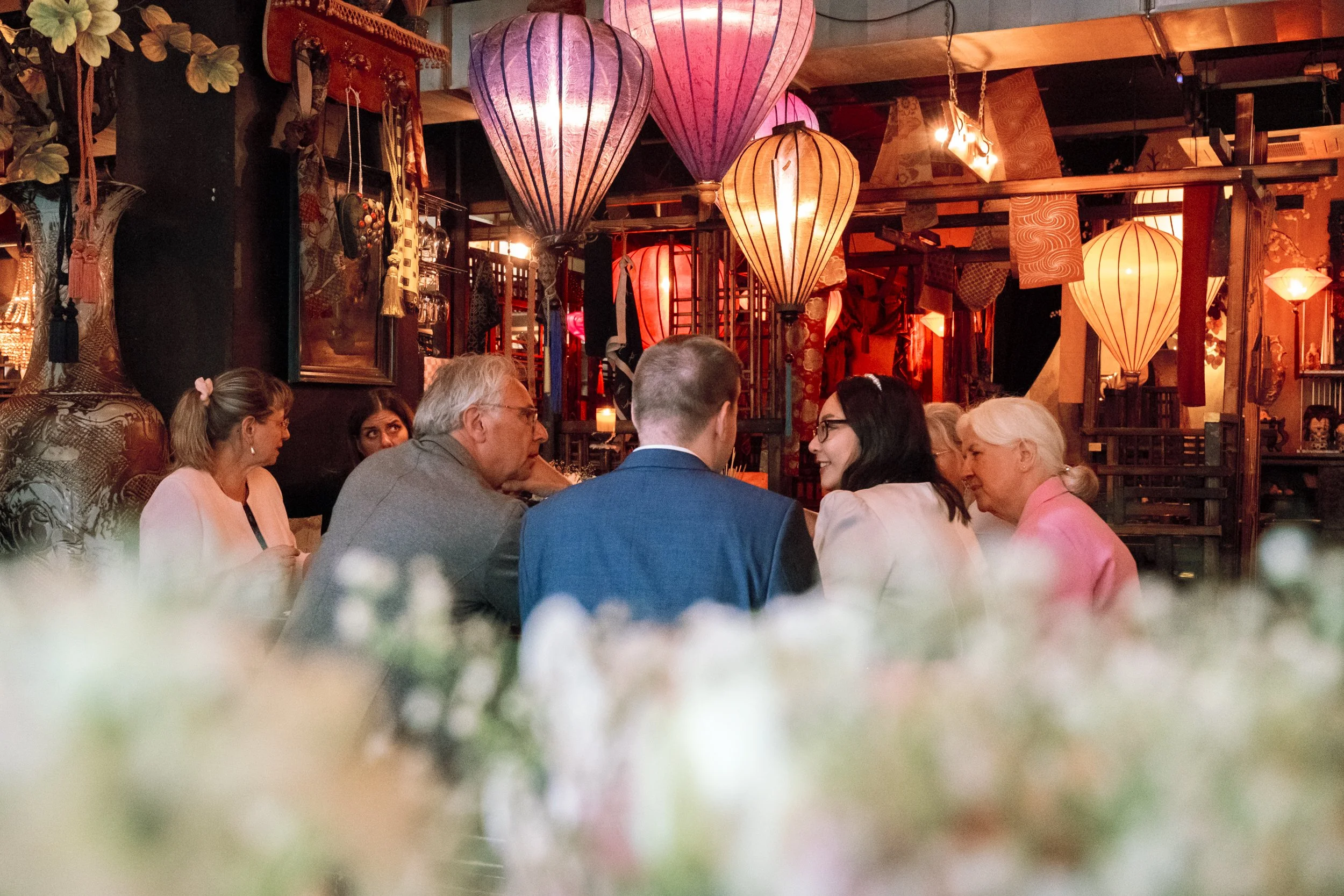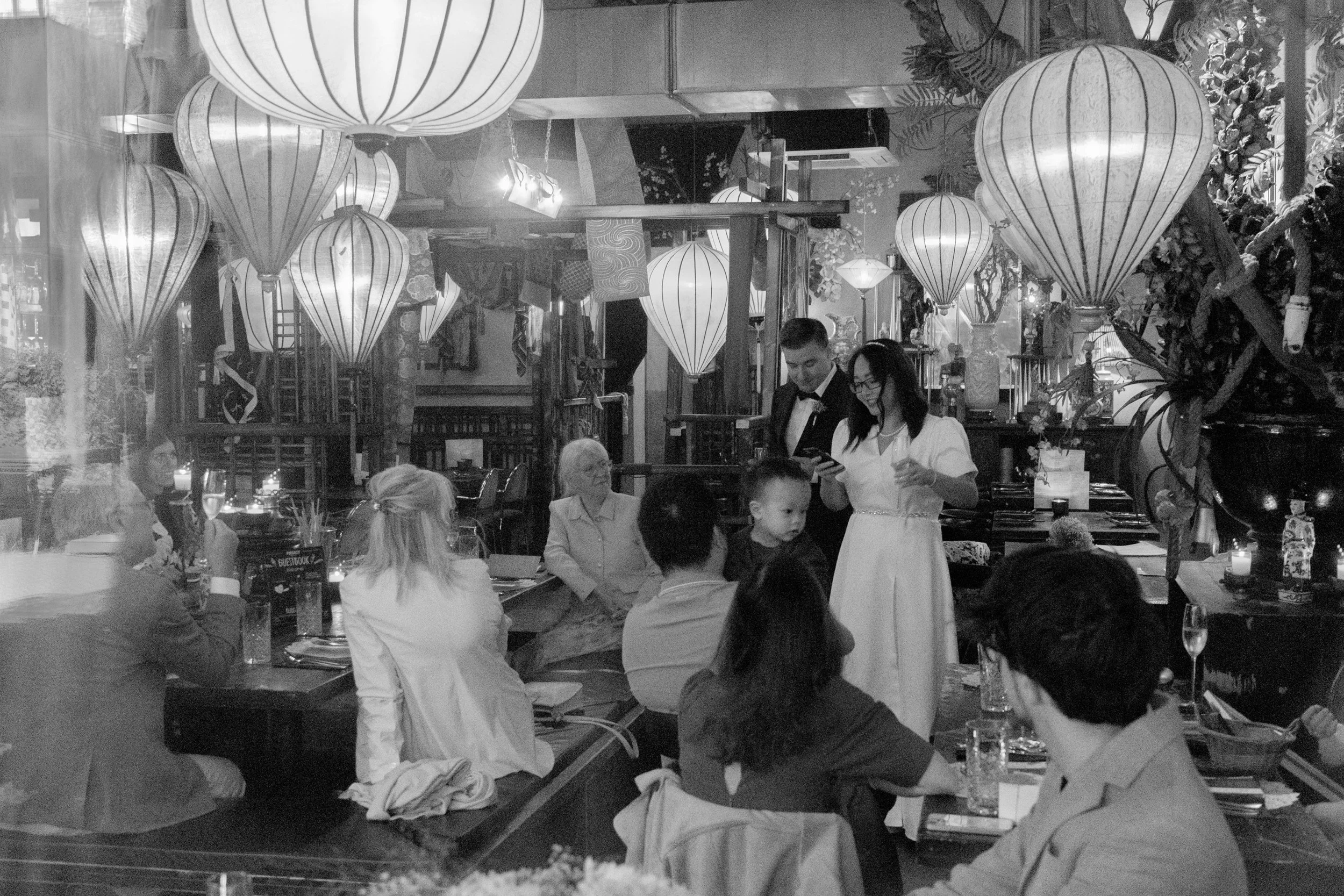 A nap egy kis vietnámi étteremben folytatódott, ahol a finomabbnál finomabb autentikus ételek mellett mindenki személyre szóló üzenetet írhatott a friss házaspárnak. Jó volt figyelni, ahogy a magyar nyelv ízes szavai, az angolul zajló párbeszédek és a vietnámi barátok örömteli morajlása összeért a koccintások között.